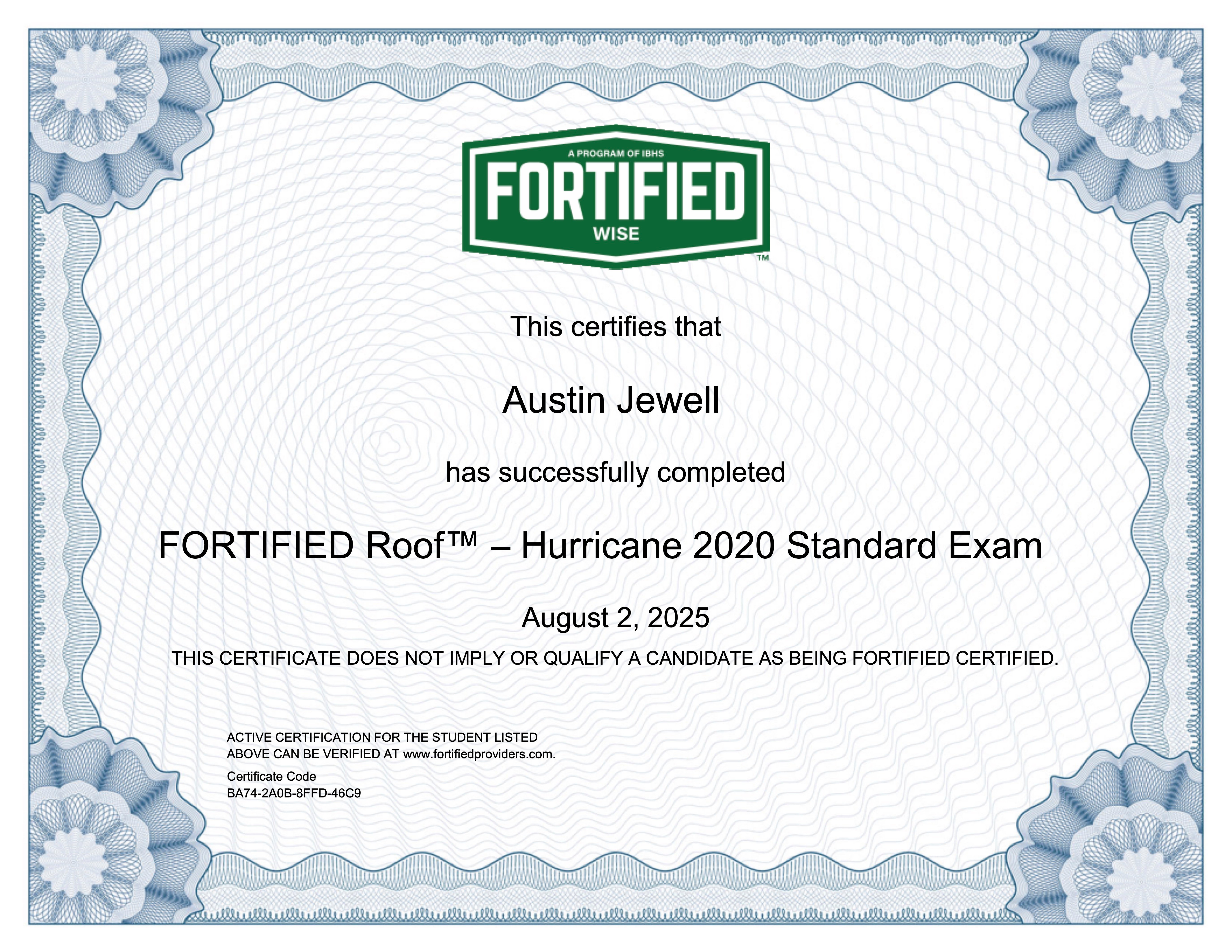 Is Capitol Improvements certified to install FORTIFIED roofs?